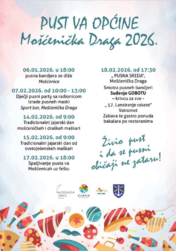 Pusni program 2026: događanja u Mošćeničkoj Dragi, Brseču i okolici